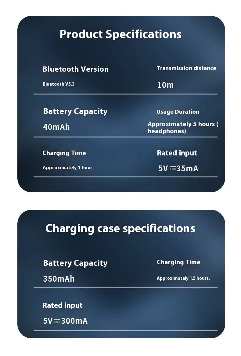 Ilgas Veikimo Laikas:350mAh įkrovimo dėklas suteikia iki 30 valandų bendro naudojimo laiko. Jums nereikės nuolat ieškoti kroviklio – tiesiog įdėkite ausines į dėklą ir visą dieną mėgaukitės stabilia jungtimi.